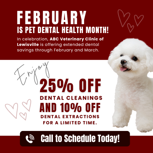 Welcome to ABC Veterinary Clinic of Lewisville! Our facility has proudly served Lewisville, Flower Mound, Hebron, and the surrounding communities for more than 20 years, and we would be honored to have your pet as our newest patient. As a full-service companion animal clinic, we strive to provide a wide range of high-quality, compassionate services for dogs, cats, and their owners with our experienced veterinarians.